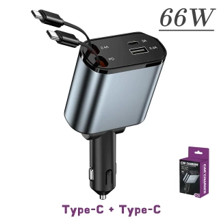 Compatible with QC3.0+PD. Car charger cigarette socket 120w can efficiently and quickly charge QC3.0+PD compatible devices. Only devices that support QC3.0+PD can use QC3.0+PD it works with include the iPhone 15/14/13/12/11/ Plus/ Pro/ Pro Max/ mini/ XS / XS Max / XR /X /8 Plus/8, Samsung Galaxy Note 22 Ultra/ S23/S22/S22+/S22 Ultra/S21+/S20/S10 5G /A54, Google Pixel 7/ 7a/ 6/ 6a/ 5/ 4xl/ 3xl/ 2xl/ 3a/ 4/ 4a/ Nexus 6P, and many others. [Flexible Retractable Car charger] The retractable car charger allows you to pull out the cable within a range of 80cm(2.6ft) for use, and it retracts back automatically for safe and tidy storage without any cable entanglement. This convenient design facilitates easy and practical charging control and usage experience. [Smart Fast Charger with Voltage Monitor] This car cigarette lighter USB charger guarantees efficient and consistent charging of your device. The iPhone car charger and Samsung Galaxy car charger are equipped with advanced features that protect your device’s battery from damage caused by overcharging, overcurrent, over-voltage, and temperature control, as well as short circuit protection. [Suitable for Various Vehicle Models] The car cell phone charger provides extensive compatibility with various vehicle types, including mainstream 12V-24V cars, ensuring a secure and stable connection even when driving over bumpy roads. The retractable design of the charger allows for easy insertion and withdrawal of the charging cable, making it convenient to use and store. 120W/66W 4 IN 1 Retractable Car Charger Mobile Phone USB PD Type C Cable for iPhone Fast Charge Cord Cigarette Lighter QC Adapter Features: 4 in 1 Design: This versatile car charger combines four functions in one device, including a retractable cable, fast charging capabilities, and compatibility with multiple mobile devices. Retractable Cable: The charger comes with a retractable USB PD Type C cable for clutter-free charging and easy storage. Say goodbye to tangled cables in your car! High-Speed Charging: With 120W/66W output, enjoy super-fast charging for your iPhone, Android devices, and more, ensuring your devices stay powered up on the go. Cigarette Lighter QC Adapter: Equipped with a cigarette lighter QC adapter, it allows charging from any car cigarette port, making it highly convenient for travel. Wide Compatibility: Compatible with iPhone, Type C, and other mobile devices, making it perfect for family or multiple device users. Durable and Safe: Built with safety features like short-circuit protection, overheating prevention, and overload defense to ensure safe charging for you and your devices. Product Description: The 120W/66W 4 IN 1 Retractable Car Charger is the ultimate solution for fast and efficient charging while you're on the move. This charger offers a 4-in-1 functionality, combining a retractable cable, USB PD Type C port, and cigarette lighter adapter in a compact, sleek design. Whether you're driving long distances or commuting daily, this charger ensures your devices are fully charged with minimal hassle. Designed for versatility, this charger is compatible with iPhones, Type C devices, and other mobile phones, supporting high-speed charging with up to 120W output. Its retractable design eliminates the mess of tangled cables, making it easy to store when not in use. What makes this charger stand out is its ability to offer quick charging via a QC Adapter that fits directly into your car’s cigarette lighter port. It's not just about convenience; the charger is equipped with advanced safety features to protect your devices from overcharging, overheating, and short-circuiting, ensuring a safe and reliable charging experience every time. Whether you're a frequent traveler or just need a reliable charger for daily use, the 120W/66W 4 IN 1 Retractable Car Charger is your go-to device for all your in-car charging needs. Why Choose Us: Premium Quality: Our car charger is made from high-quality materials, ensuring durability and longevity even with frequent use. Fast Charging Technology: Charge your devices up to 3x faster than standard chargers with our QC Adapter and 120W output. Versatile and Convenient: Perfect for users with multiple devices, offering compatibility with iPhones, Type C, and other mobile phones. Space-Saving Design: The retractable cable allows for easy storage and a clutter-free car environment. Safety First: With built-in protection against overheating, short circuits, and overcharging, you can trust our charger to keep your devices safe. Reviews from Other Customers: 1. James W. (USA) "This charger is a game-changer! I love the retractable cable feature—it keeps my car organized, and the fast charging is incredible. I can charge my iPhone and Android phone simultaneously without any issues. Highly recommend!" 2. 3. Rachel L. (UK) "I’ve tried several car chargers, but this one is by far the best. The 4-in-1 design is so convenient, and the build quality feels solid. It charges my iPhone super fast, and I love that I can tuck the cable away when not in use." 4. 5. Pierre D. (France) "Excellente qualité et charge très rapide. Le câble rétractable est vraiment pratique, et il fonctionne parfaitement avec mon iPhone et mon chargeur QC. Très satisfait de cet achat." 6. 7. María G. (Spain) "El cargador es perfecto para los viajes. Carga mi móvil rapidísimo, y el diseño retráctil es súper práctico. Muy contenta con este producto."